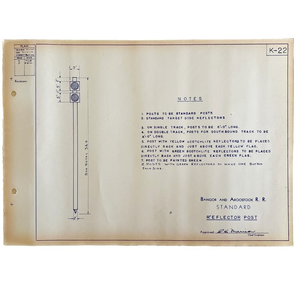 - 1966 Railroad Bangor Aroostook Reflector Post Blueprint K22 Trains DWDD12