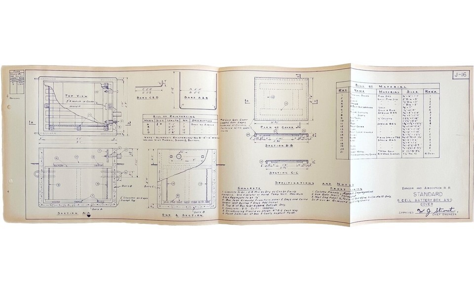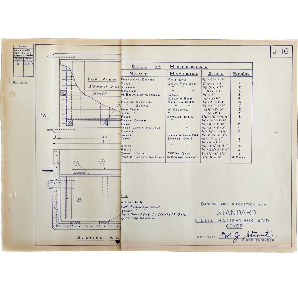 - 1967 Railroad Bangor Aroostook 6 Cell Battery Box & Cover Blueprint J16 DWDD15