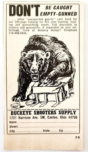 1968 Buckeye Shooters Supply Products Grizzly Bear Advertisement Hunting E91E