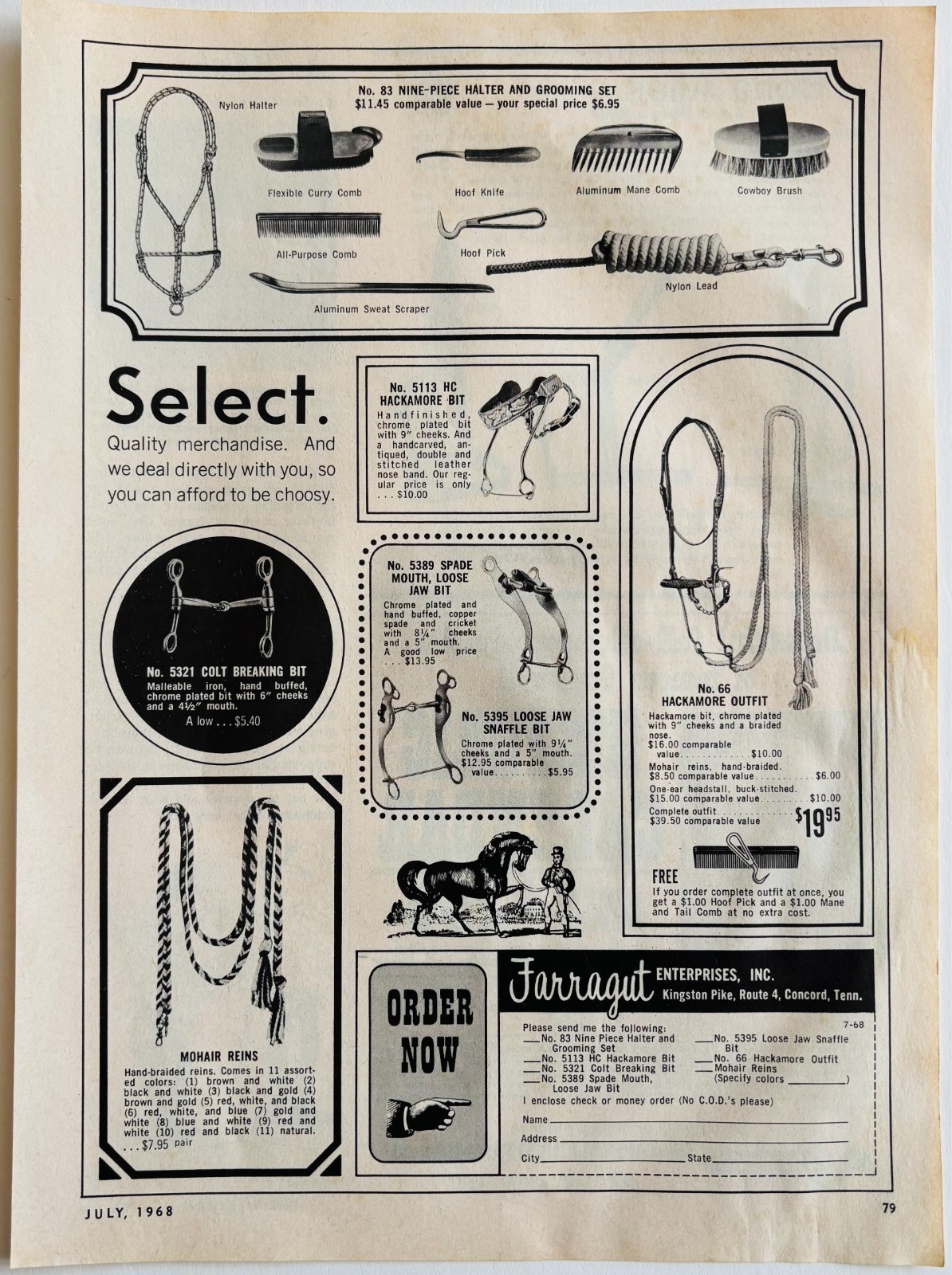 - 1968 Farragut Horse Care Products Advertisement Ranch Western Tennessee DWP9C