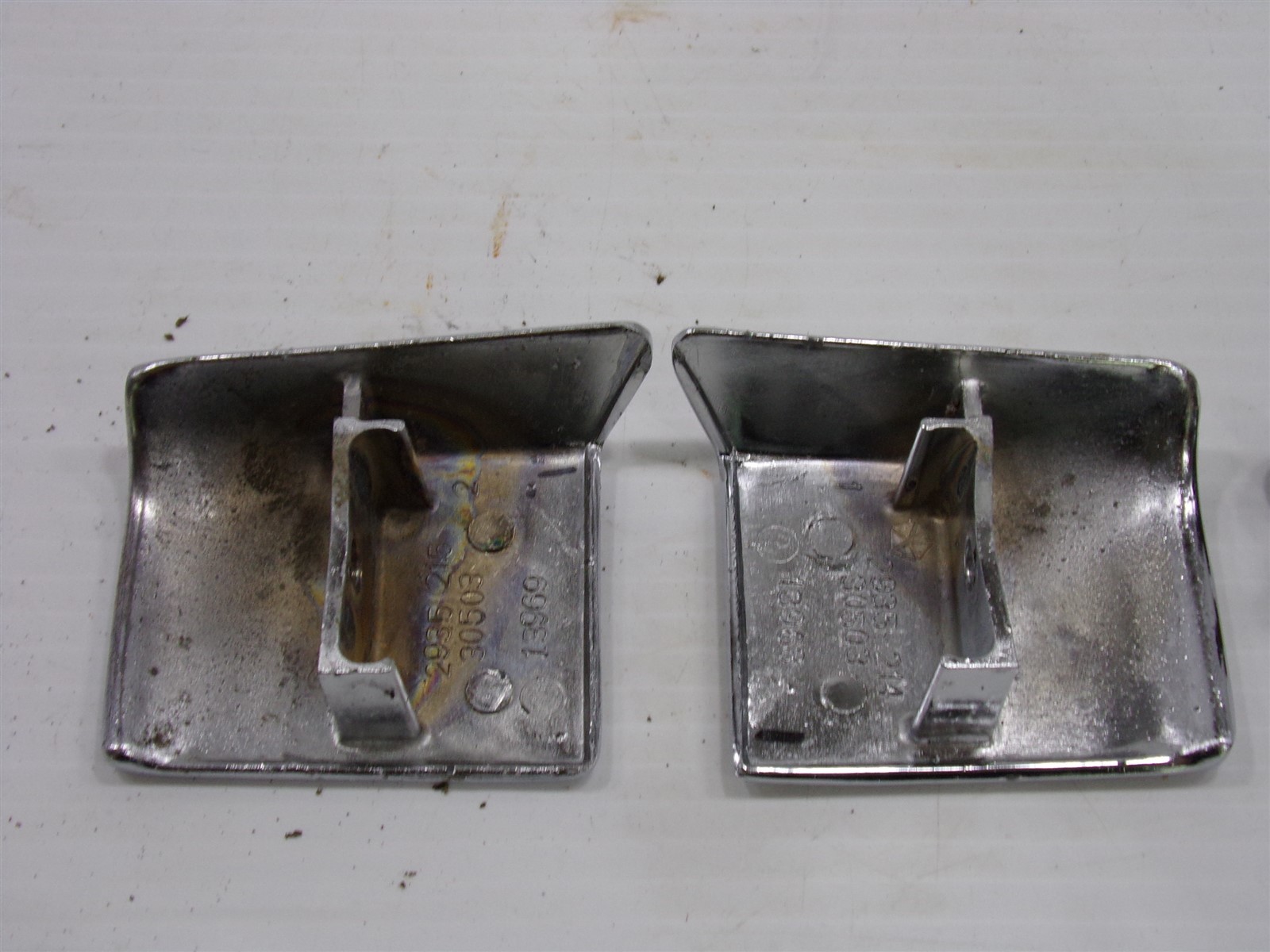 These are correct for 1969 - 1971 Doge truck, Power Wagon, Sweptline and others - verify they are correct for your application prior to purchase. Both have imperfections in the chrome, light bubbles, scuffs, scratches (the passenger side has deeper scratches). Both bolts are included. Please use the zoom feature to closely inspect pictures. My items are sold as-is, no returns. Descriptions, pictures and part numbers (when available) are provided. You are responsible for ensuring that it is correct for your application or purpose. We use International shipping. charges the shipping cost. If you've had 3 offers declined, message us with your offer. Don't forget to add our store (stores.ebay.com/n2mopars) to your favorites, we are adding new items constantly. Thank you for looking! 42625-1