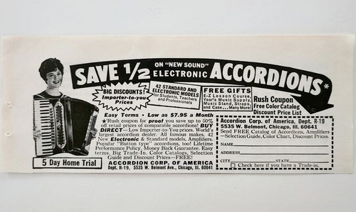 1969 Accordion Corporation Of America Advertisement Instrument Inventory E91J