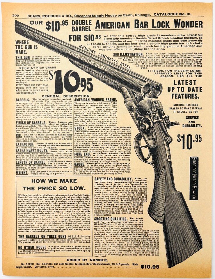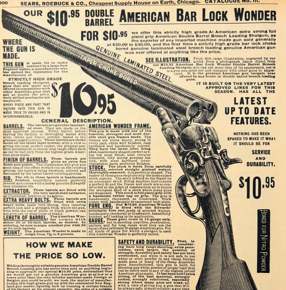 - 1969 American Bar Lock Shotgun 1901 Repro Advertisement Sears Firearms DWU16E