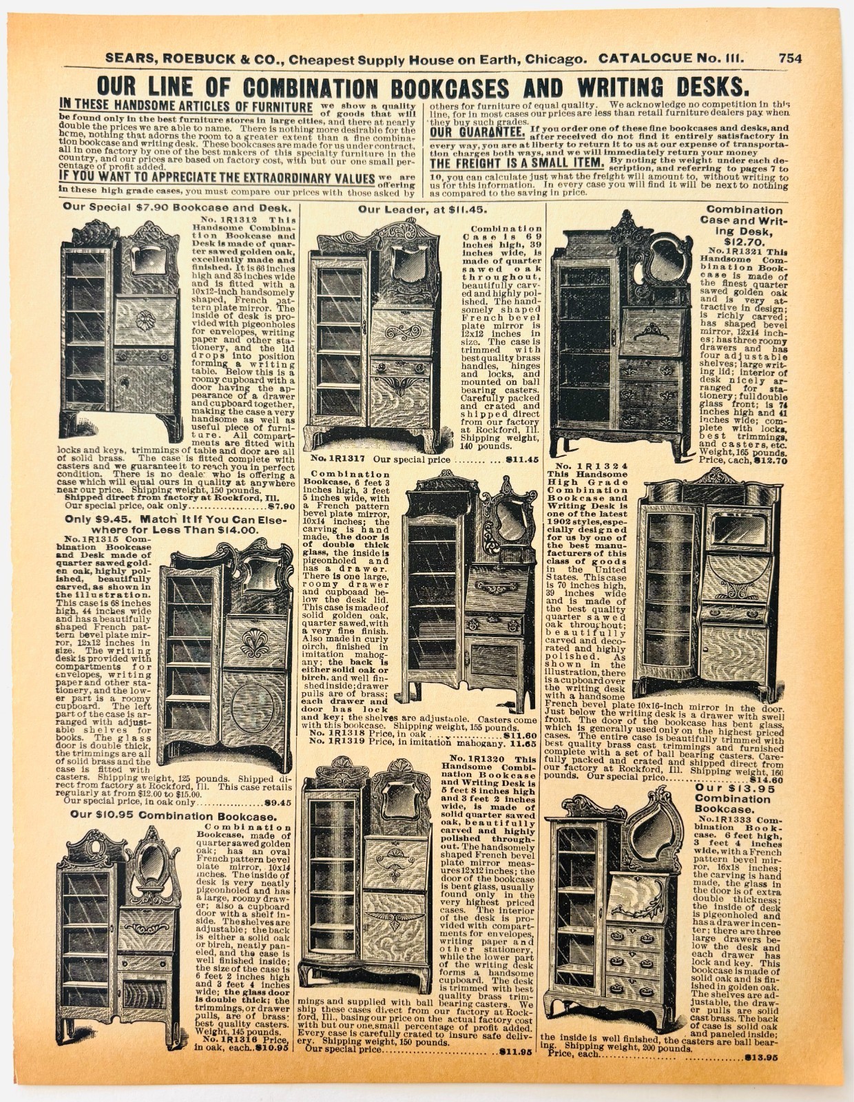- 1969 Bookcase Writing Desk Combo 1901 Repro Advertisement Sears Furniture DWU17C