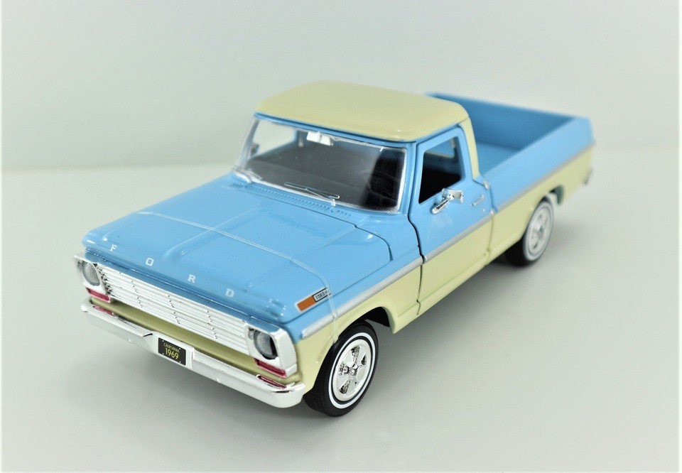 - 1969 Ford F-100 Pickup Truck diecast 1:24 scale Model Car Two tone Blue - Cream