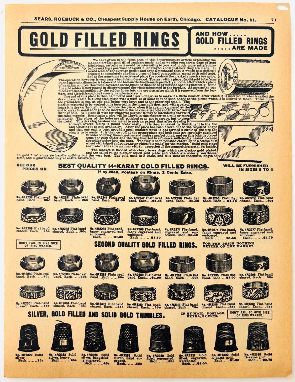 - 1969 Gold Filled Rings Thimbles 1901 Repro Advertisement Sears Jewelry DWU16J