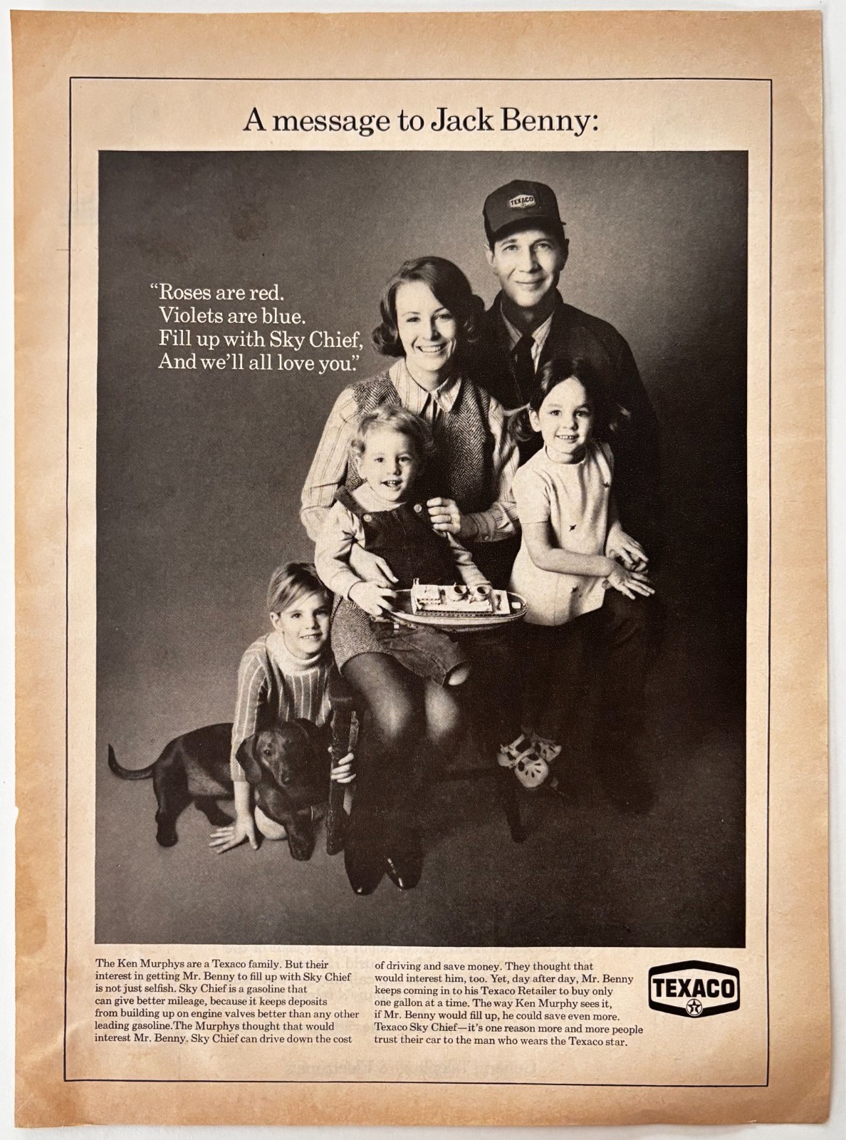 - 1969 Texaco Sky Chief Gasoline Advertisement Vintage Gas & Oil Jack Benny F15Q