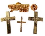 - 1970-90s MCM Lot Of 5 Christian Pins Pendants Vintage Gold Tone Crucifix E8A