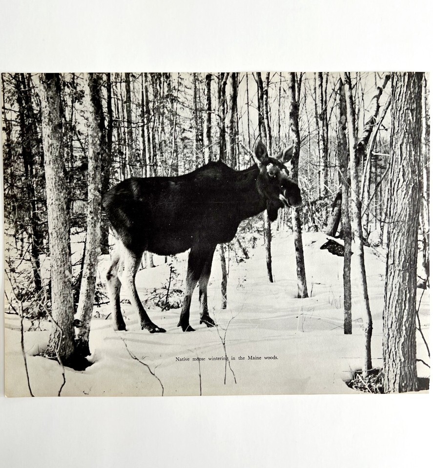 1970 Maine Moose Winter Woods Photo Print Vintage Wildlife