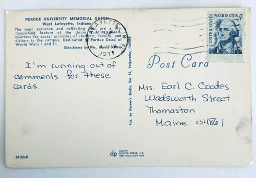 - 1970 Purdue University Memorial Union Postcard West Lafayette Indiana E86RP2