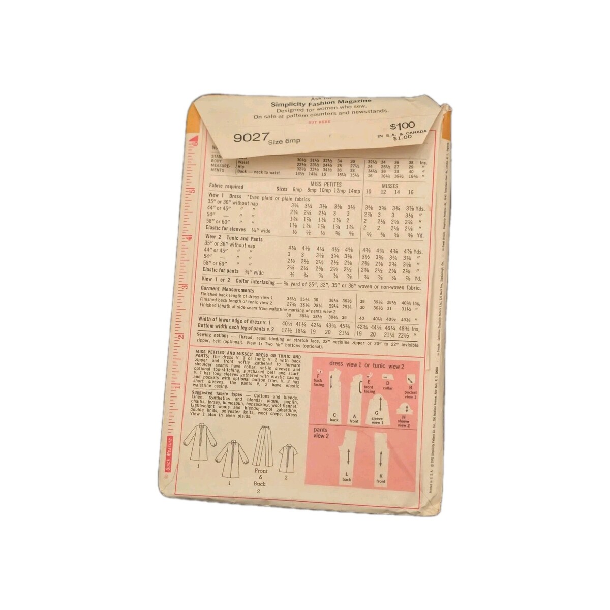 - 1970 Simplicity 9027 Vintage Sewing Pattern Women's Dress Tunic Pant Size 6P