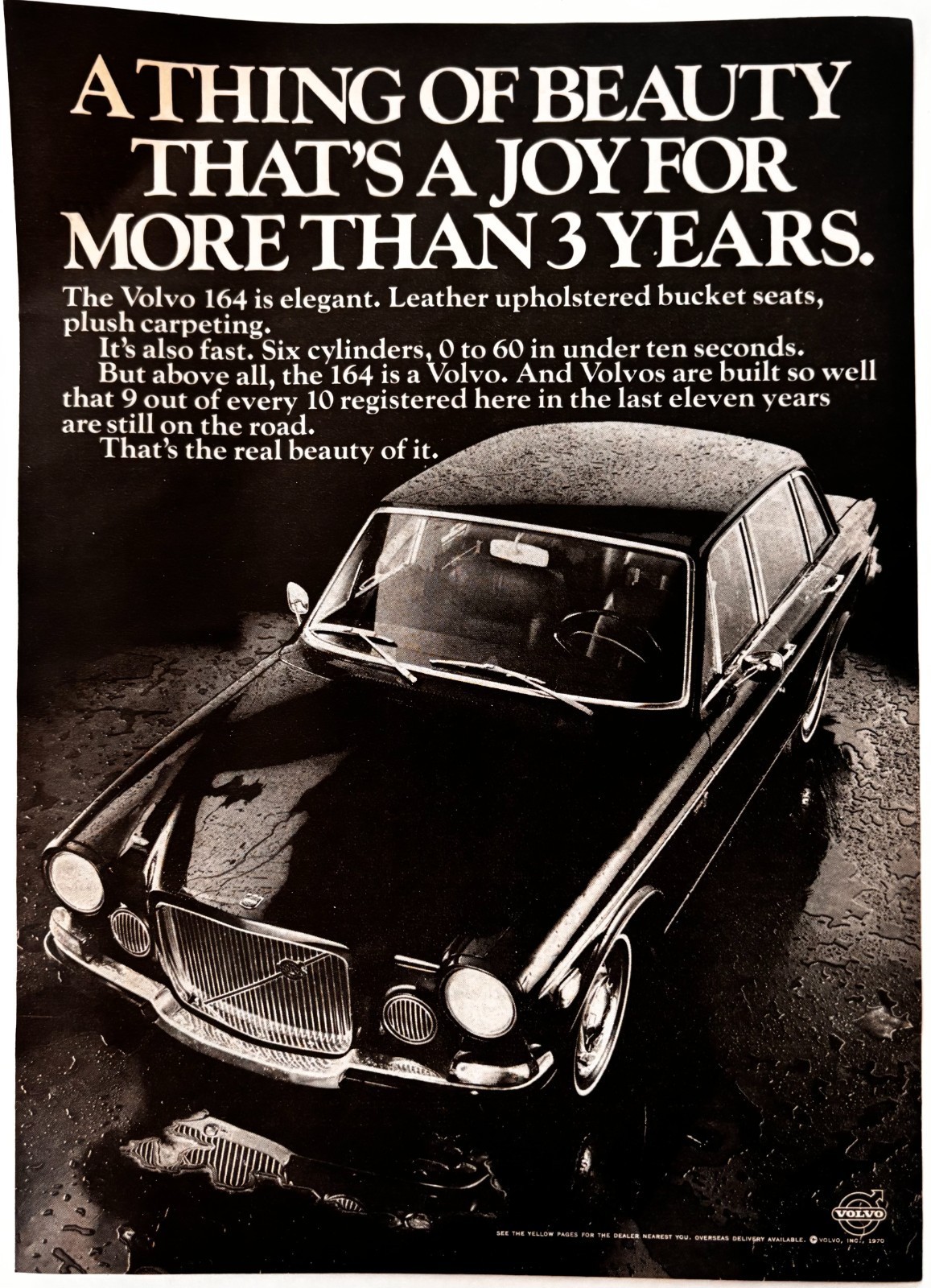 1970 Volvo 164 Advertisement Vintage Automobilia European Import Cars F15O