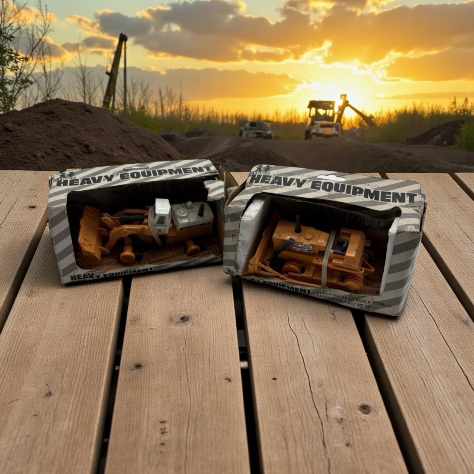 1970's Tomy Heavy Equipment, Pay loader with Box & plow with box NEW - Lot of 2