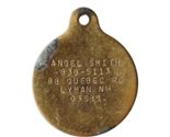 1970s Brass Dog Tag Lyman New Hampshire Vintage Collectible 03585 1.25" F6P