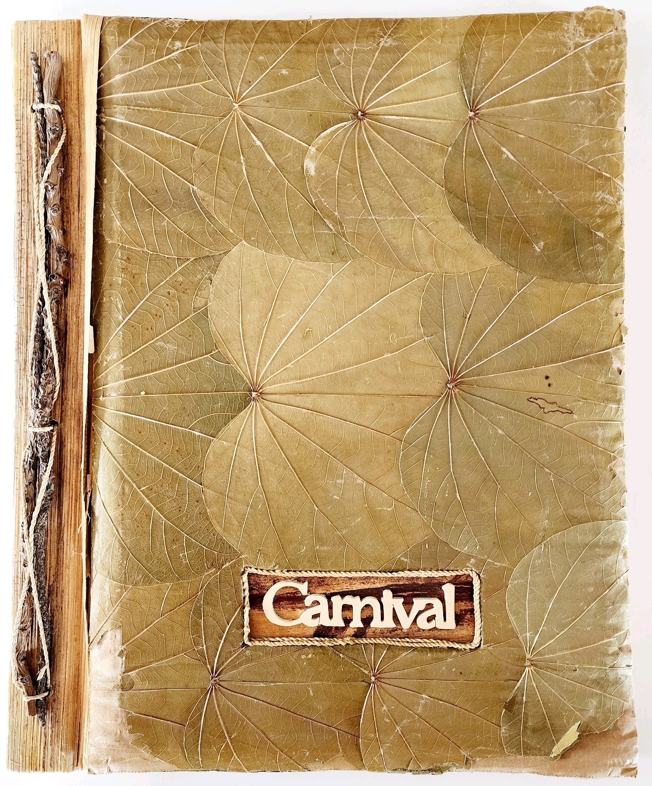 - 1970s Carnival Cruise Handmade Photo Album Real Dried Leaves Wood Cover GstRm
