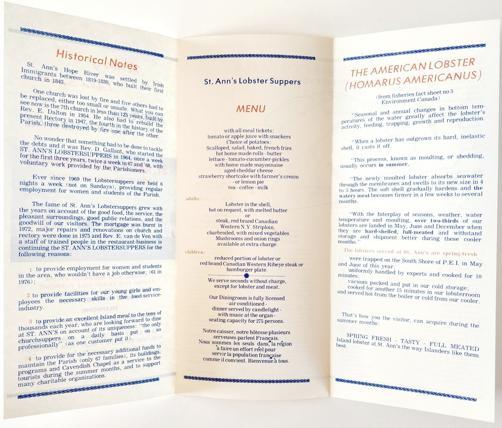 - 1970s Cavendish Prince Edward Island St Ann Church Supper Menu Brochure PEI E8S