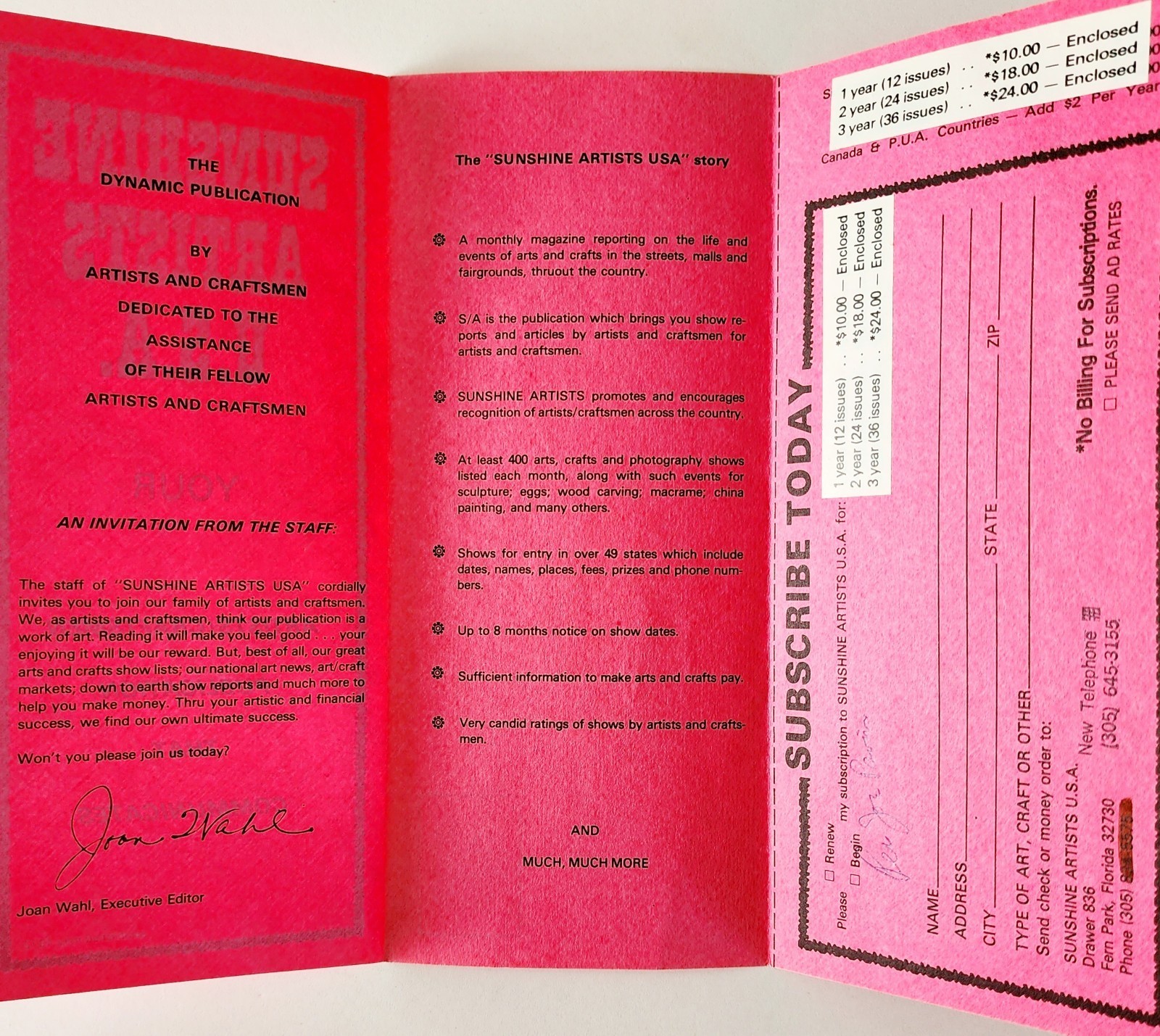 - 1970s Sunshine Artists USA Magazine Order Form Brochure Publication Vintage E8S