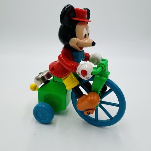 - 1970s Walt Disney Mickey Mouse Tricycle Musical Wind-up ILLCO Toys School Toy