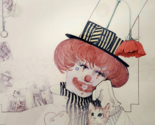 1970s William Tara Clown Kitten Print Framed Vintage Poppy MCM Art GstRm
