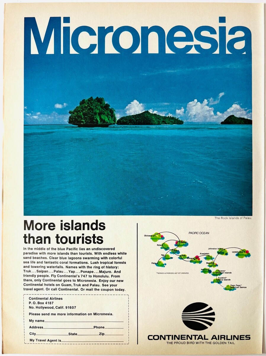 - 1972 Continental Airlines Advertisement Micronesia Aviation Vintage DWW10D