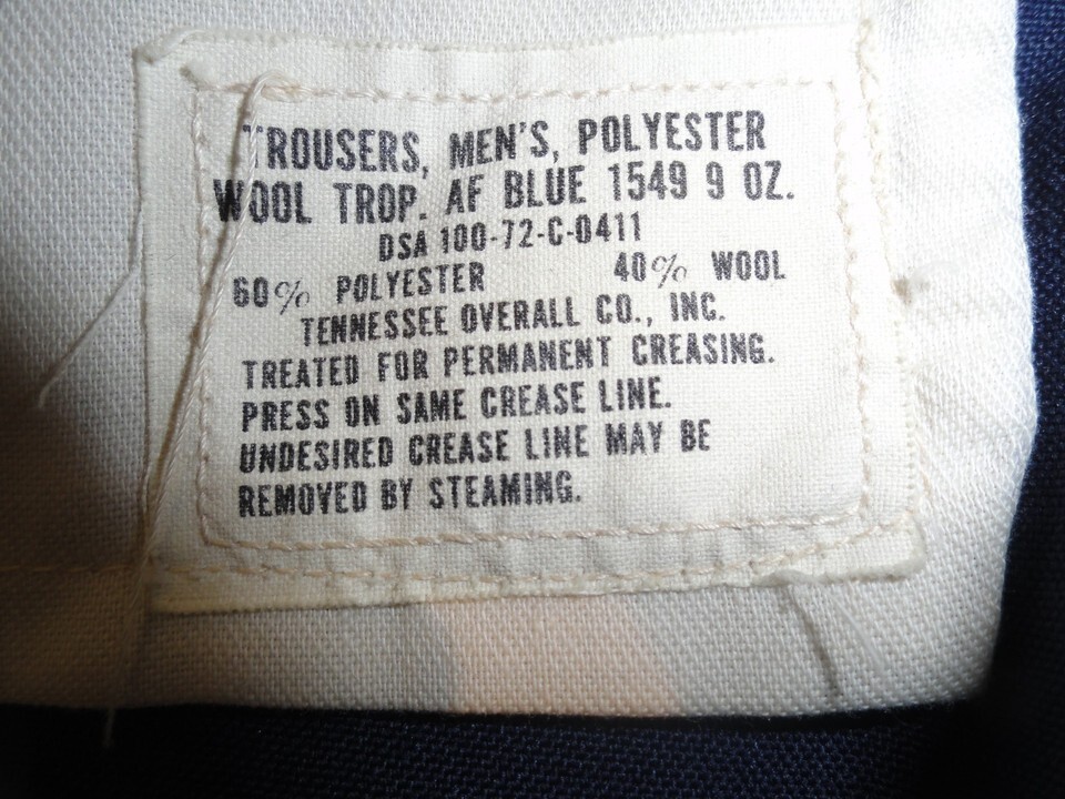 - 1972 USAF UNIFORM BLUE SERVICE PANTS 1549 9 OZ POLY WOOL TROPICAL 36X32