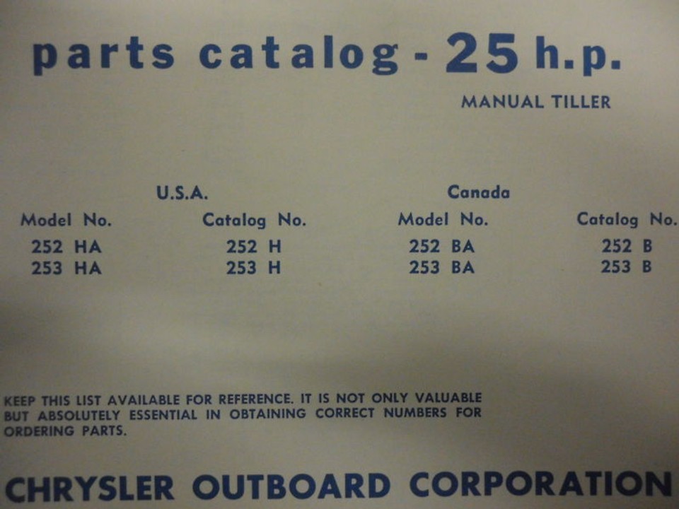 - 1973 Chrysler Outboard 25 HP Parts Catalog Manual Tille FACTORY