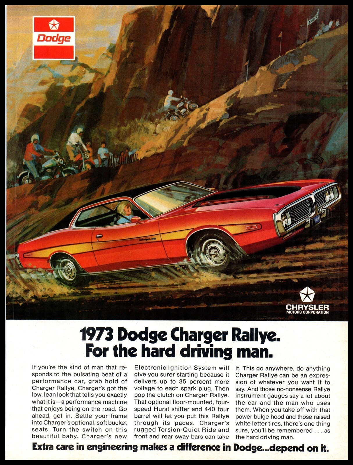 - 1973 HOT ROD Magazine Car Print Ad - Dodge "Charger Rallye" 440 4 Barrel A5