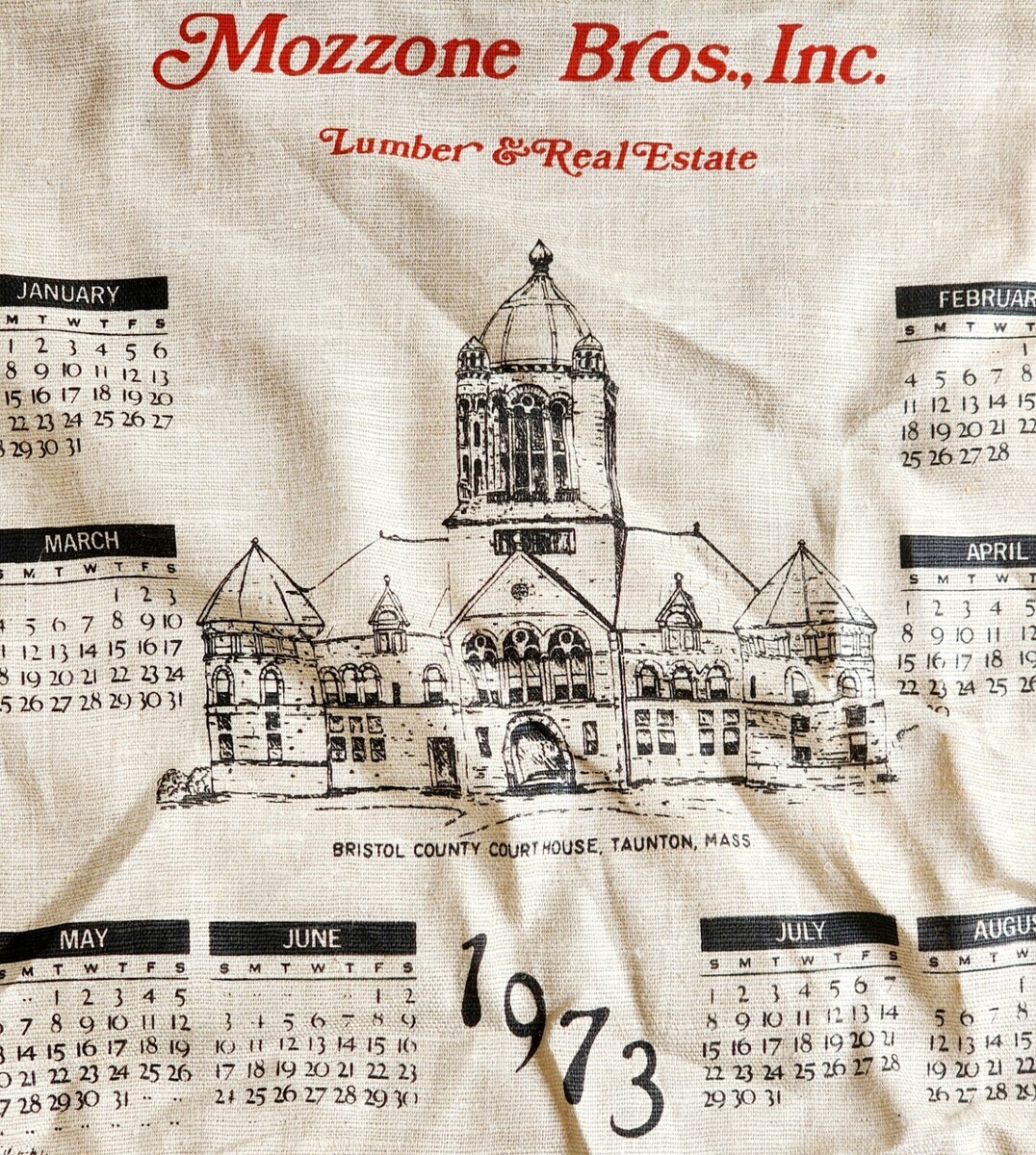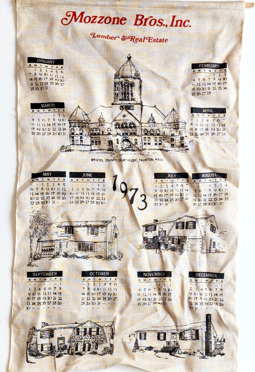 - 1973 Mozzone Bros Calendar Burlap Lumber Real Estate Bristol Court House HWI