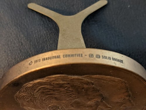 - 1973 Nixon Agnew Inauguration Second Term Medal 3" Bronze Stand 1 20