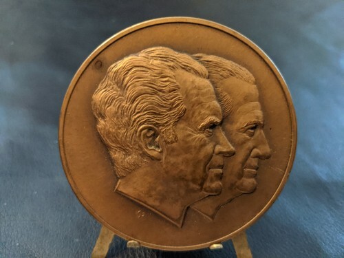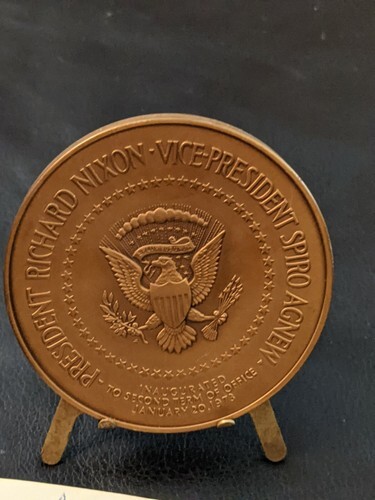 Up for sale is a used 1973 Richard Nixon Spirow Agnew Inauguration Second Term Medal 3" Bronze Stand 1 20.