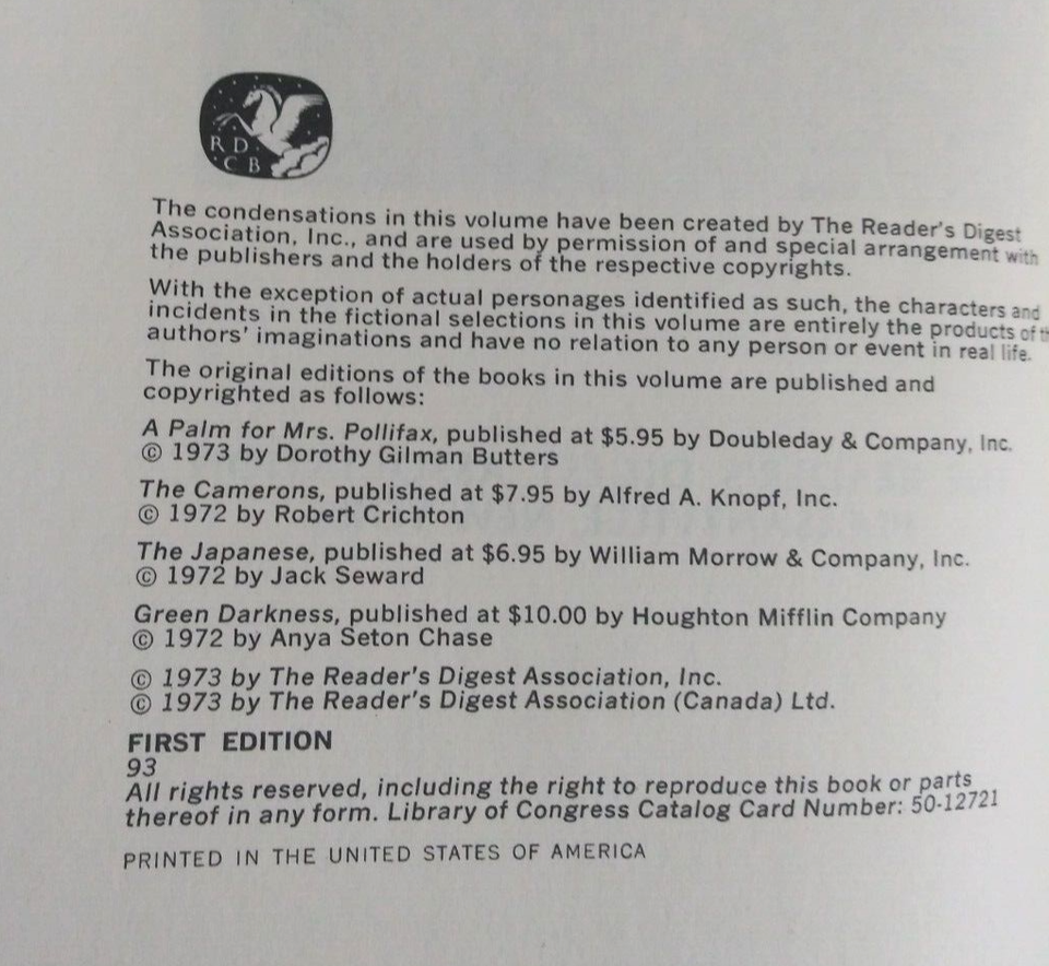 - 1973 Readers Digest Condensed Books Volume 2 First Edition 93 Hardback