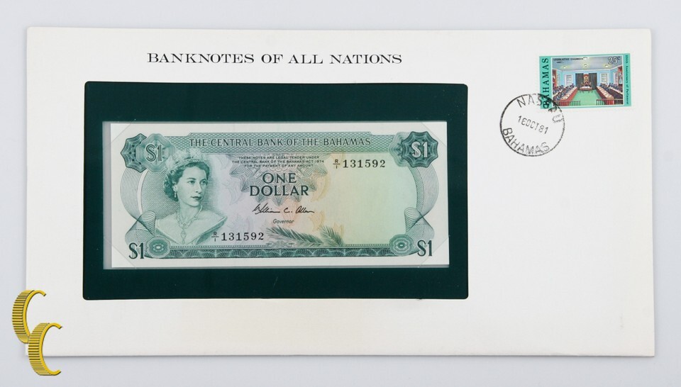 - 1974 $1 The Central Bank of Bahamas UNC Condition Banknotes of all Nations