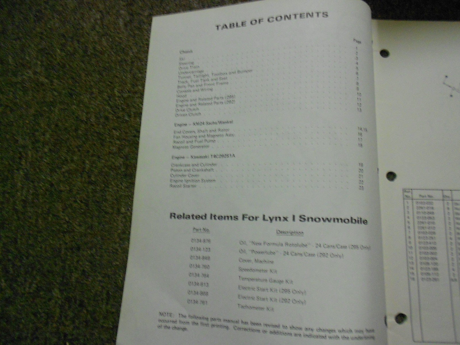 1974 Arctic Cat Lynx I Manuale delle parti illustrate