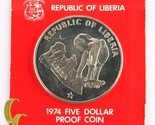 1974 Liberia Dollar Coin (Proof, PF) 0.900 Silver Bull Elephant Five KM-29