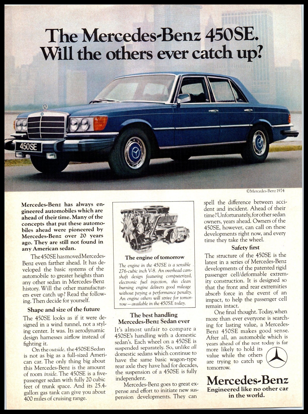 - 1974 Magazine Car Print Ad - MERCEDES BENZ 450SE, Blue A7