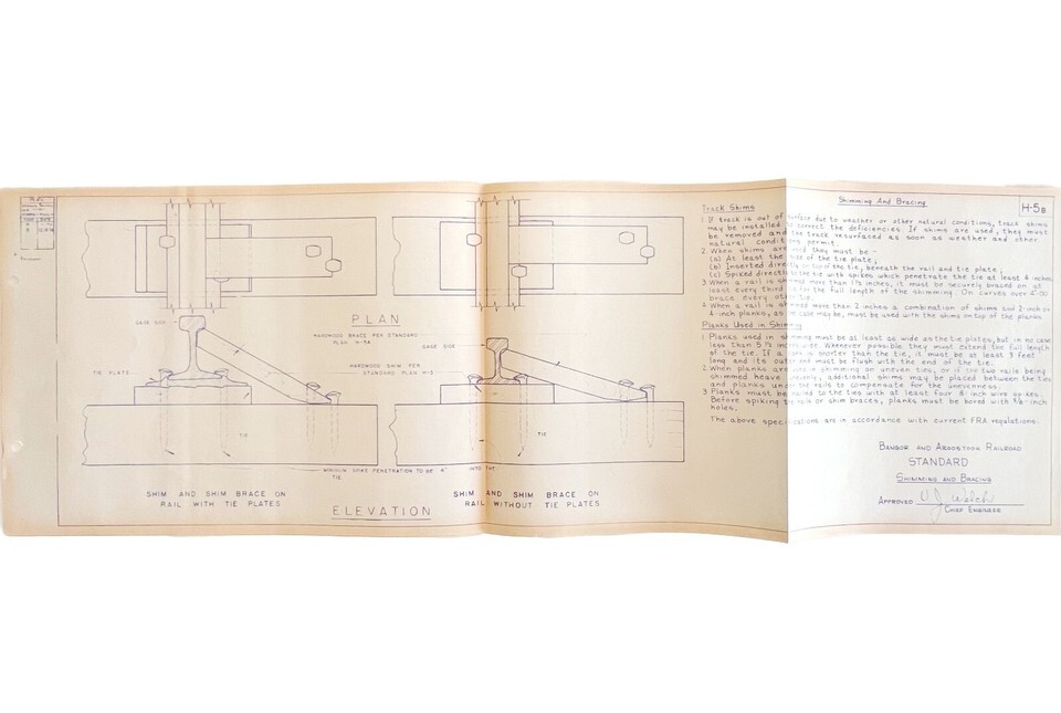 - 1974 Railroad Bangor Aroostook Original Blueprint Shimming Bracing H5b DWDD11
