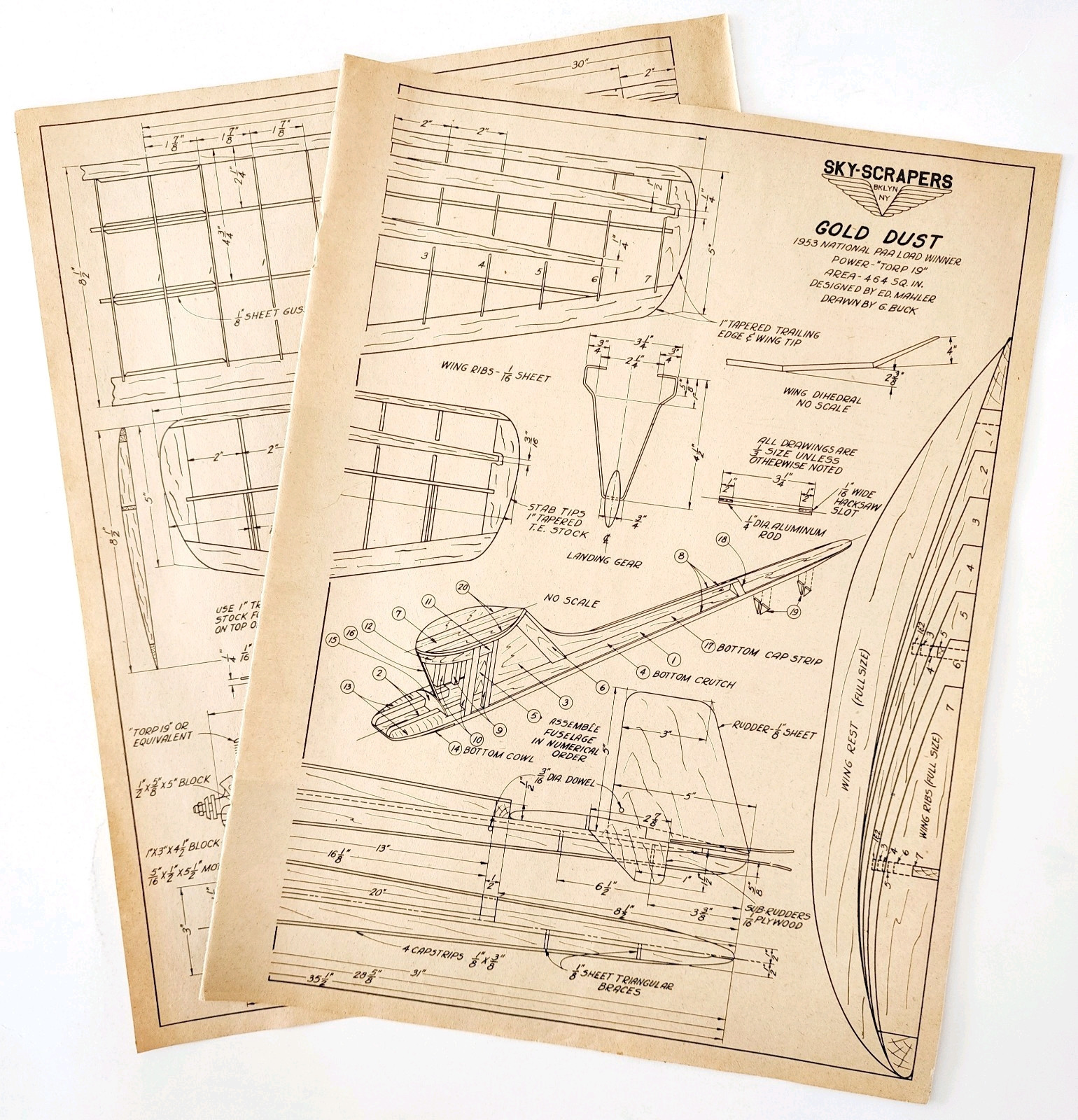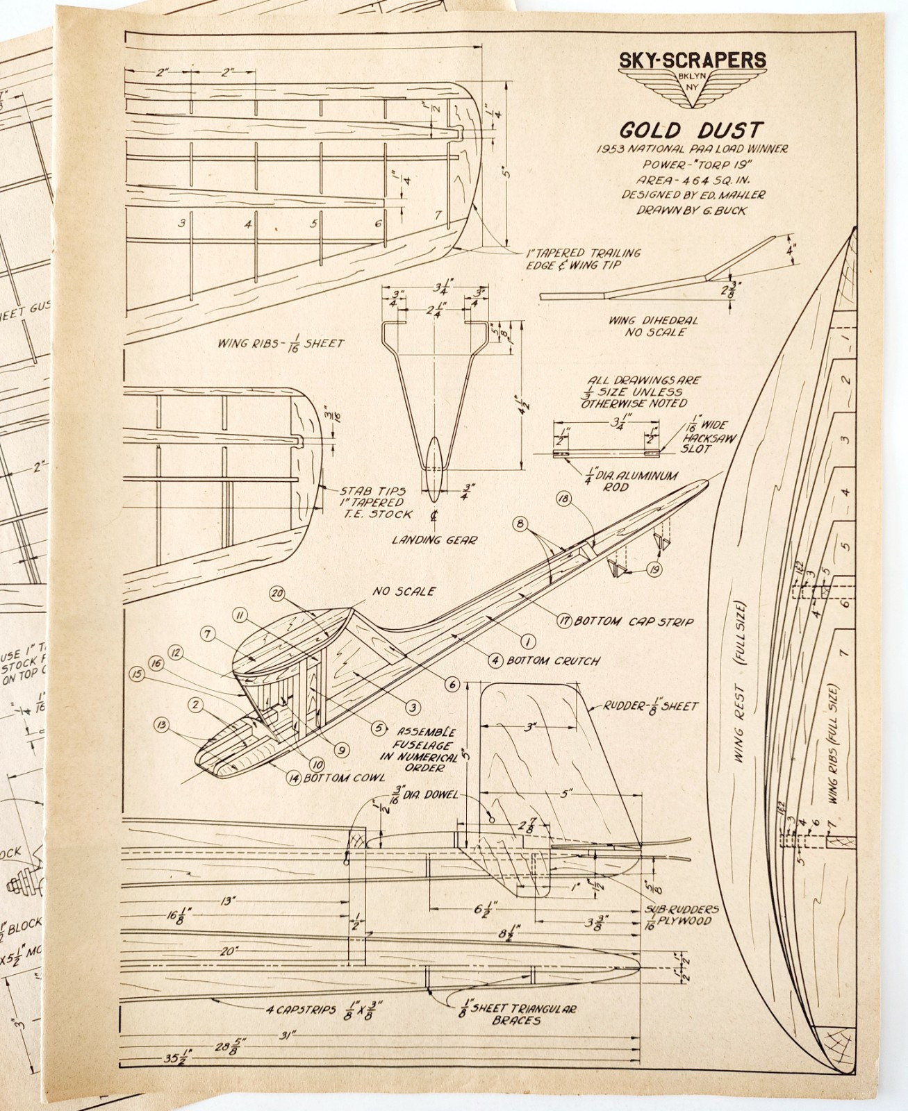 - 1974 Sky-Scraper Gold Dust Model Airplane Blueprint 1953 National Winner DWQQ12