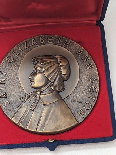 - 1975 Elizabeth Ann Seton Canonization Bronze Token Medal Blue Case Italy 3.25
