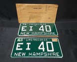 1975 New Hampshire License Plate Tags Set EI 40 - Low 2 Digit Number W/ Envelope. Condition is Used. Shipped with USPS Ground Advantage.