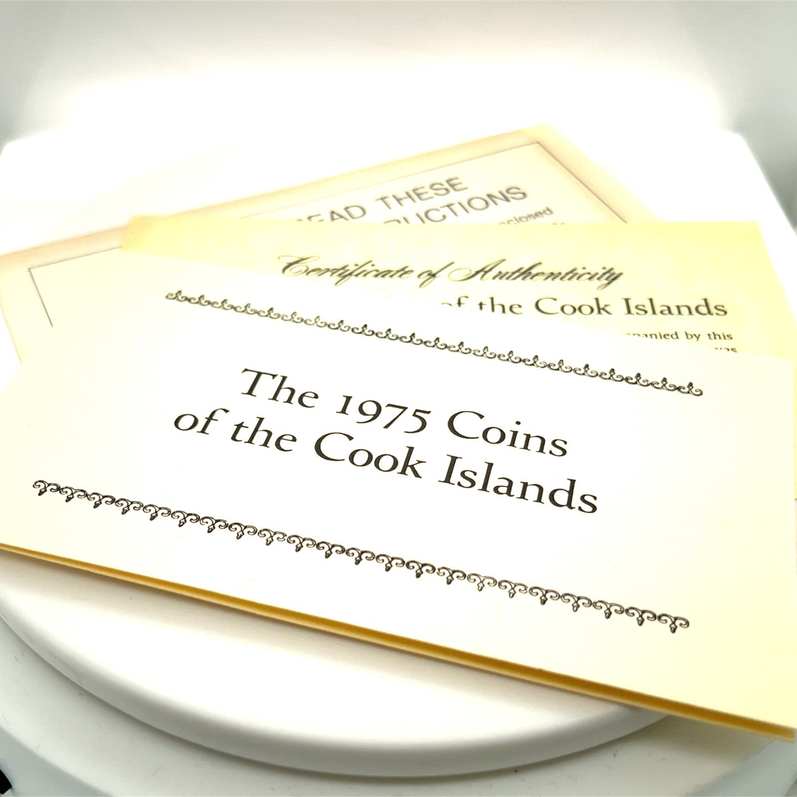 1975 Coins de l'ensemble d'epreuve des îles Cook avec des papiers