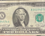 1976 $2 Bicentennial Bill low # A 00294574 A