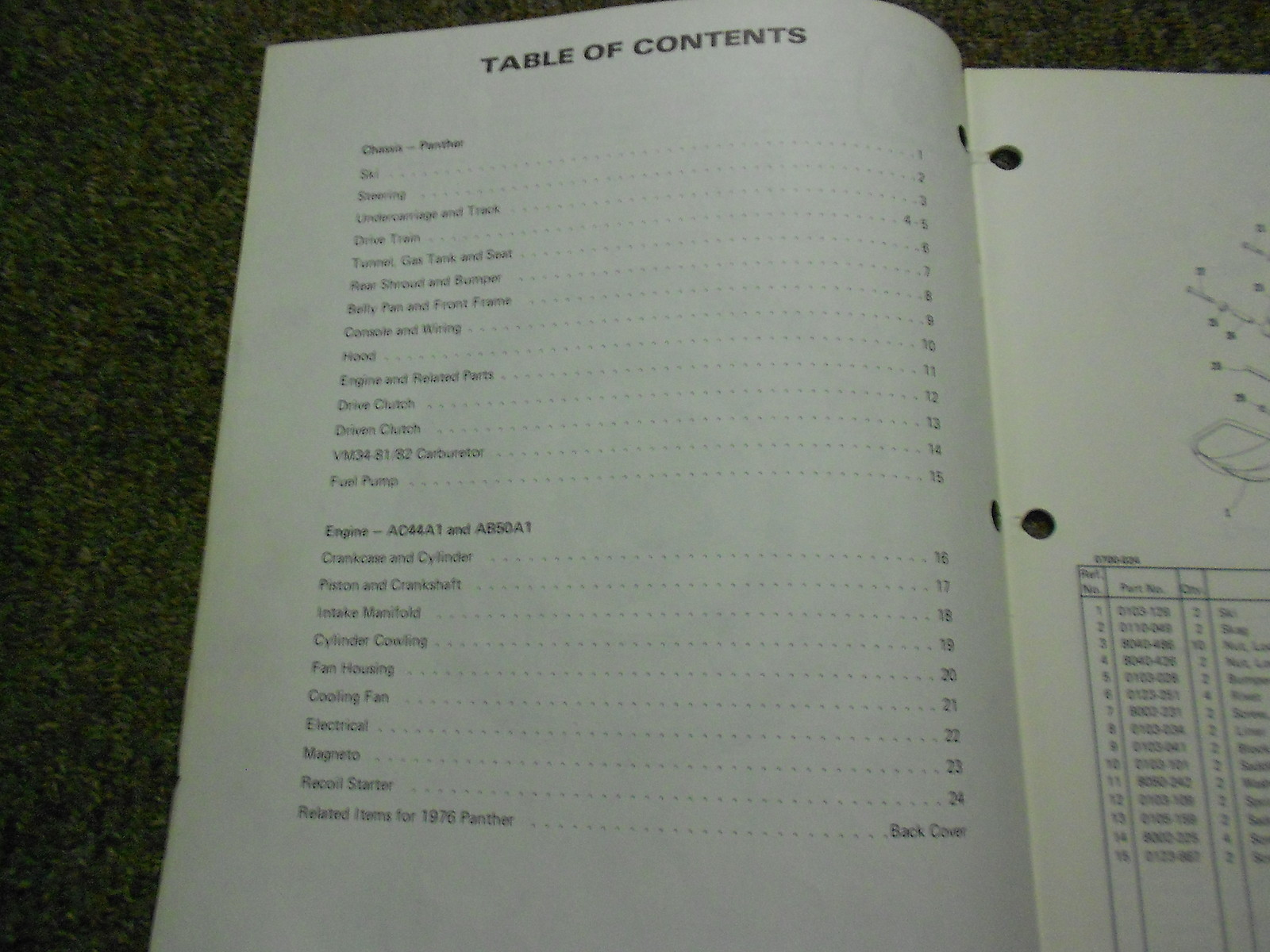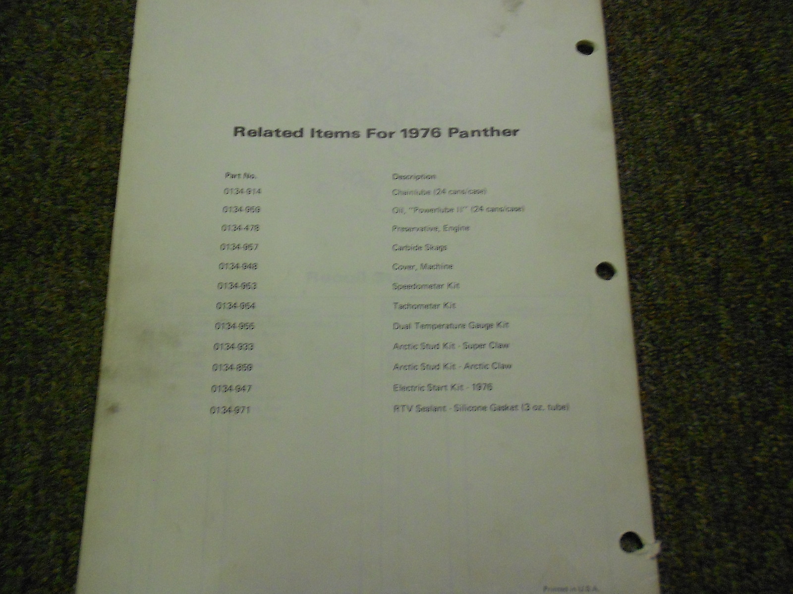 - 1976 Arctic Cat Panther Illustrated Service Parts Catalog Manual FACTORY OEM