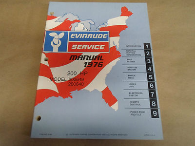 - 1976 Evinrude Service Atelier Manuel 200 HP 200649 200640 OEM Bateau