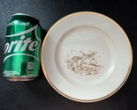 The product is a 1978 Fitz Floyd "The Hunt" salad plate featuring a charming fox hunting theme. Made of porcelain with a glossy finish, the plate showcases a cream, brown, and gold color scheme. With a diameter of 7 1/2 inches, this decorative piece was manufactured in Japan, adding a touch of sophistication to any dining table or collection of pottery and glass. Perfect for serving salads or desserts with a touch of vintage elegance. I have more salad plates, if you need a specific design.