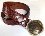 - 1979 Indiana Metal Craft Belt Buckle Alaska w/Tooled Leather Belt EXC!