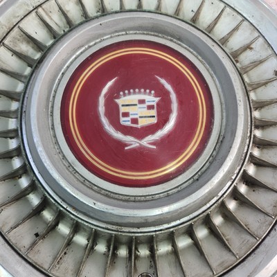 - 1980-1987 Cadillac Fleetwood Deville Brougham Turbine 15in Hubcap w Red Emblem
