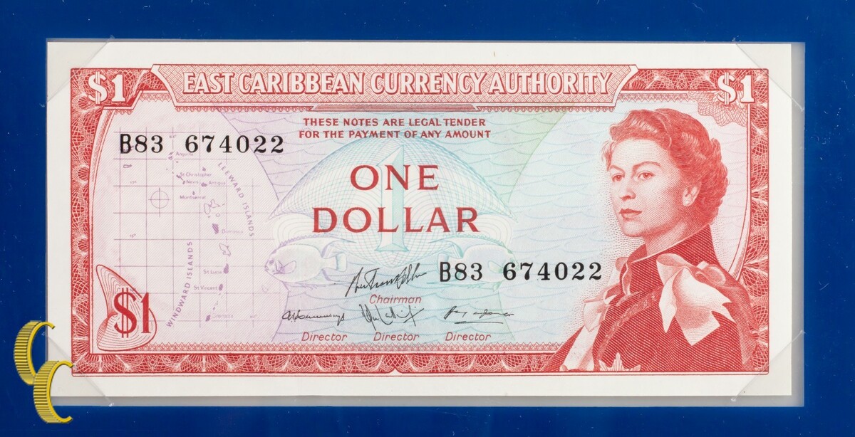 - 1980 East Caribe Uno Dólar En Billetes De Todo Naciones Estampado Sobres