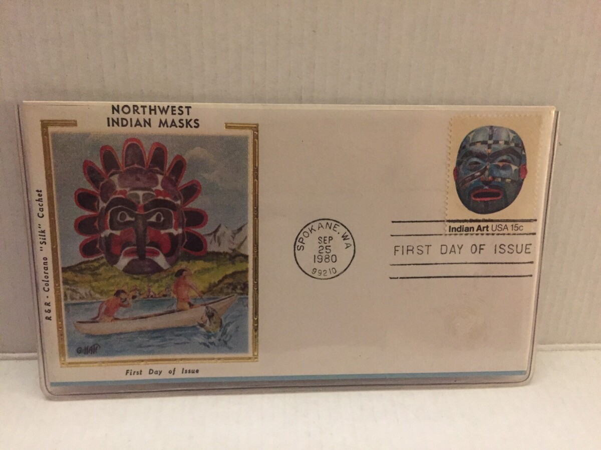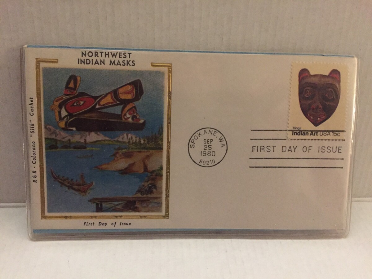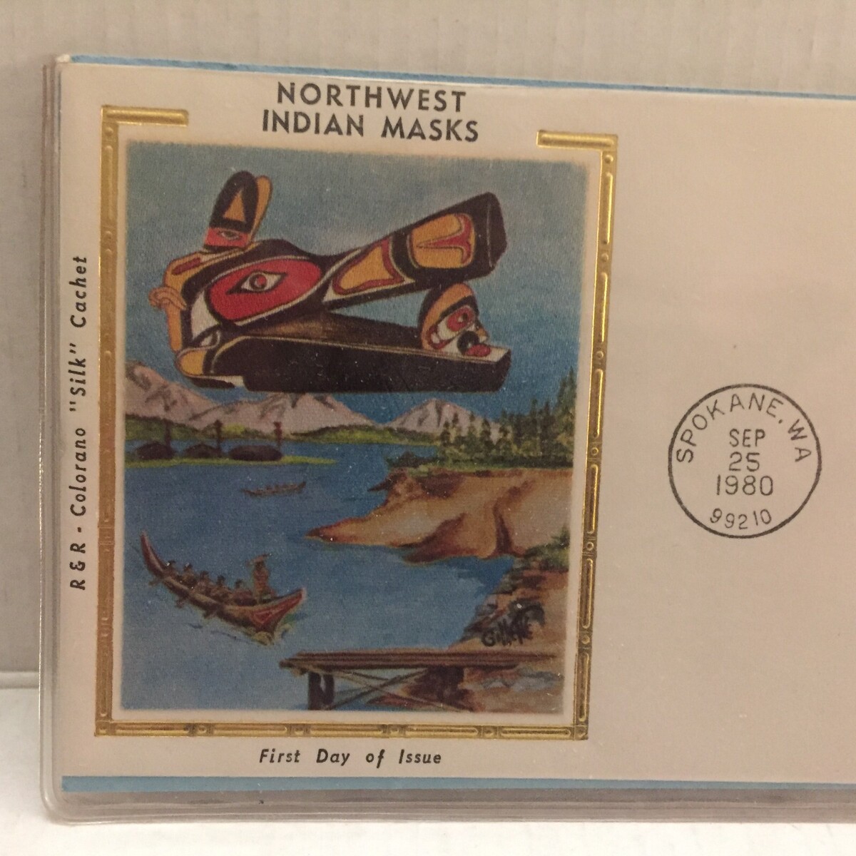 1980 Two Northwest Masks First Day of Issue Indian Art Stamps.