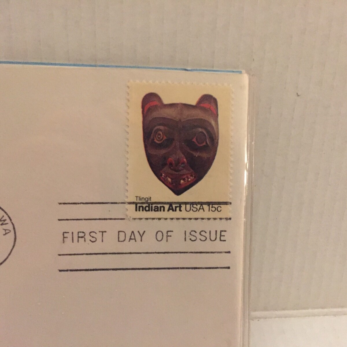 - 1980 Two Northwest Masks First Day of Issue Indian Art Stamps