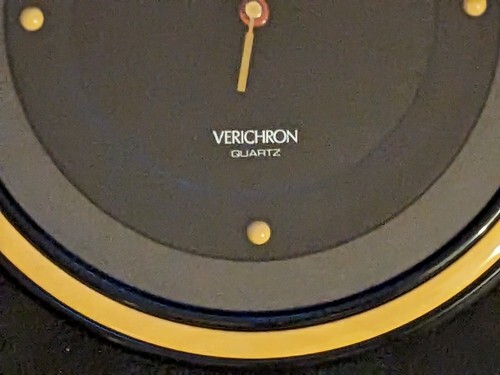 - 1980 Verichron Mid Century Modernist Colorblock Yellow Black Wall Clock Working